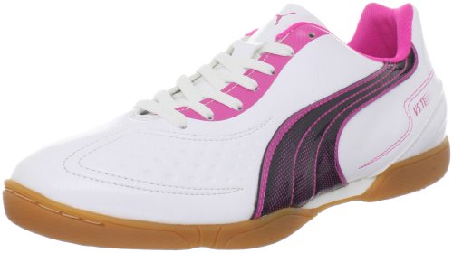 Kick your game into high gear with the V5.11 K soccer shoe from Puma. Designed for indoor games, this shoe features a more uniform kicking surface to improve your pinpoint accuracy while the strike zones are reinforced with durable stitching to improve longevity. The rubber sole is standard Puma--get ready to give the competition whiplash as you stop and turn on a dime.